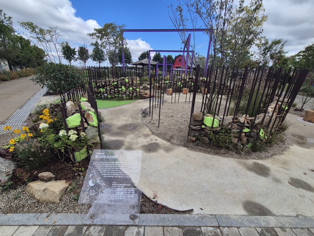 동그라미를 메인 컨셉으로 한 정원으로 아이들의 동심, 다국적 다문화의 화합을 상징